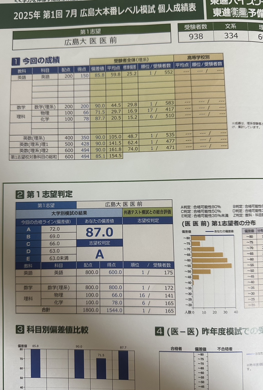 模試の結果を見せてくれたので!